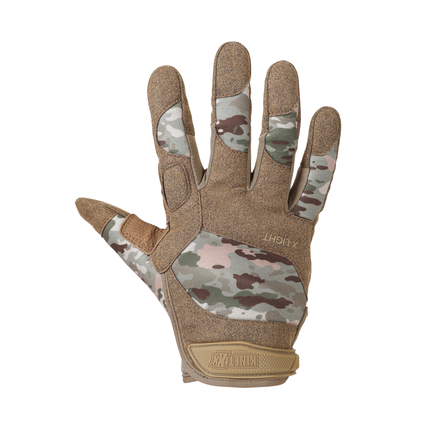 Perfect for operations and searches where a high level of dexterity is required, the Kinetixx X-Light glove is flame retardant, water resistant, and provides an anatomical fit for ultimate comfort. Offering an ergonomic design, this glove will not sacrifice any flexibility of the fingers or hands, and synthetic leather reinforcements on the back of the glove offer an added layer of protection. Features eyelets to the gloves to a carabiner, and a hook-and-loop fastener with Velcro clasp to ensure they always remain secure on the hand. Synthetic leather across the palm maintains an excellent grip at all times, and touchscreen capabilities allow for use of phones or touchscreen devices without removing the glove.