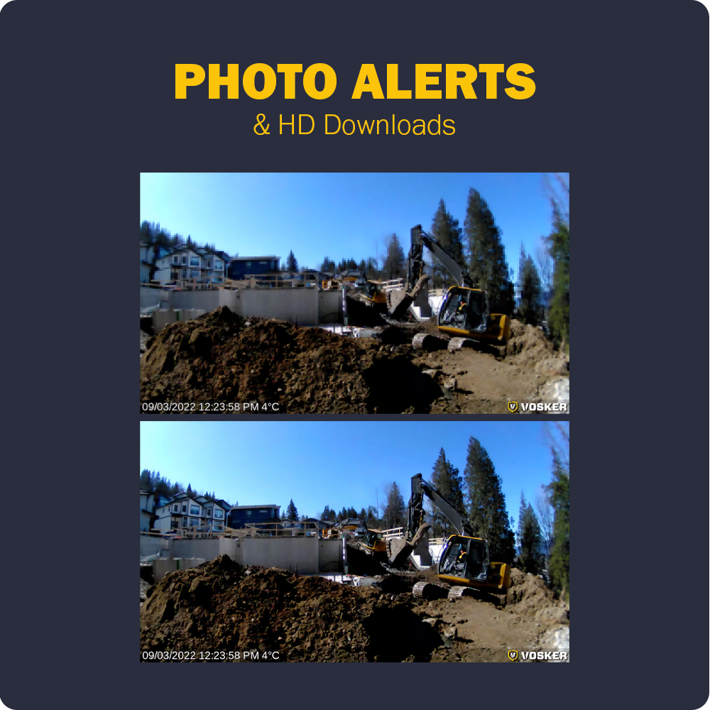 With a pre-activated SIM card included with your camera, Vosker devices are ready to keep you covered 24/7, even in areas with very little cellular reception, so there is no need to purchase a SIM card from a third-party provider. Vosker offers a range of data plans, with varying video and still image allowances to choose from, so you can find the perfect plan for your application. And what’s more, there’s no strings attached — choose from monthly or yearly plans. There’s even a 7-day free trial included, so you can decide which plan works best for you.